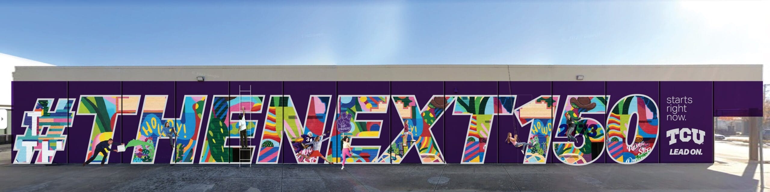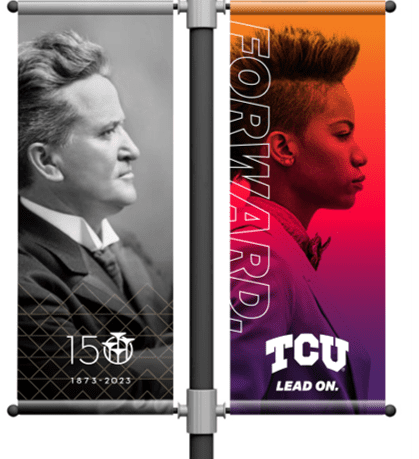 In 2023, with the basis of a solid brand in place, BVK gave the Lead On campaign an evolved, even bolder look and voice. Awash with color, the campus came alive with vivid new signage, encouraging Horned Frogs to “Lead On” courageously, compassionately and humbly.
