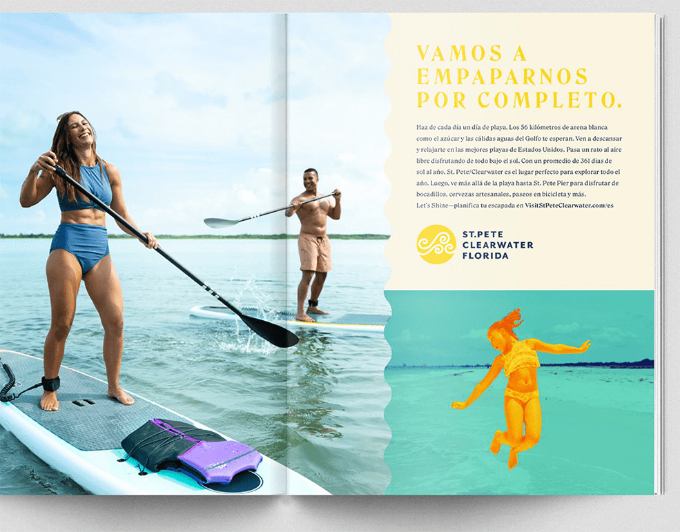 The research showed that what our target consumer wants from a vacation to St. Pete-Clearwater is to enjoy experiences that snap them out of their everyday life and activate their senses in a way that is inspiring, thrilling and enriching. They want to indulge their passion for water, sun and sand while also enriching their understanding of the area, its flavors, events and people. The concept of Vibrancy was the antidote they were looking for and what would unleash the brand’s full potential.