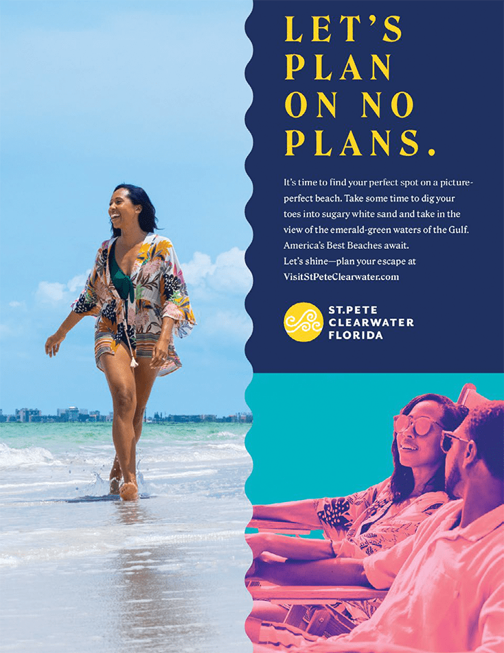 BVK’s strategic approach for Visit St. Pete-Clearwater was to develop a brand campaign that would separate the destination from the sea of sameness and create a distinctive vibe and personality that would elevate Visit St Pete-Clearwater’s brand.